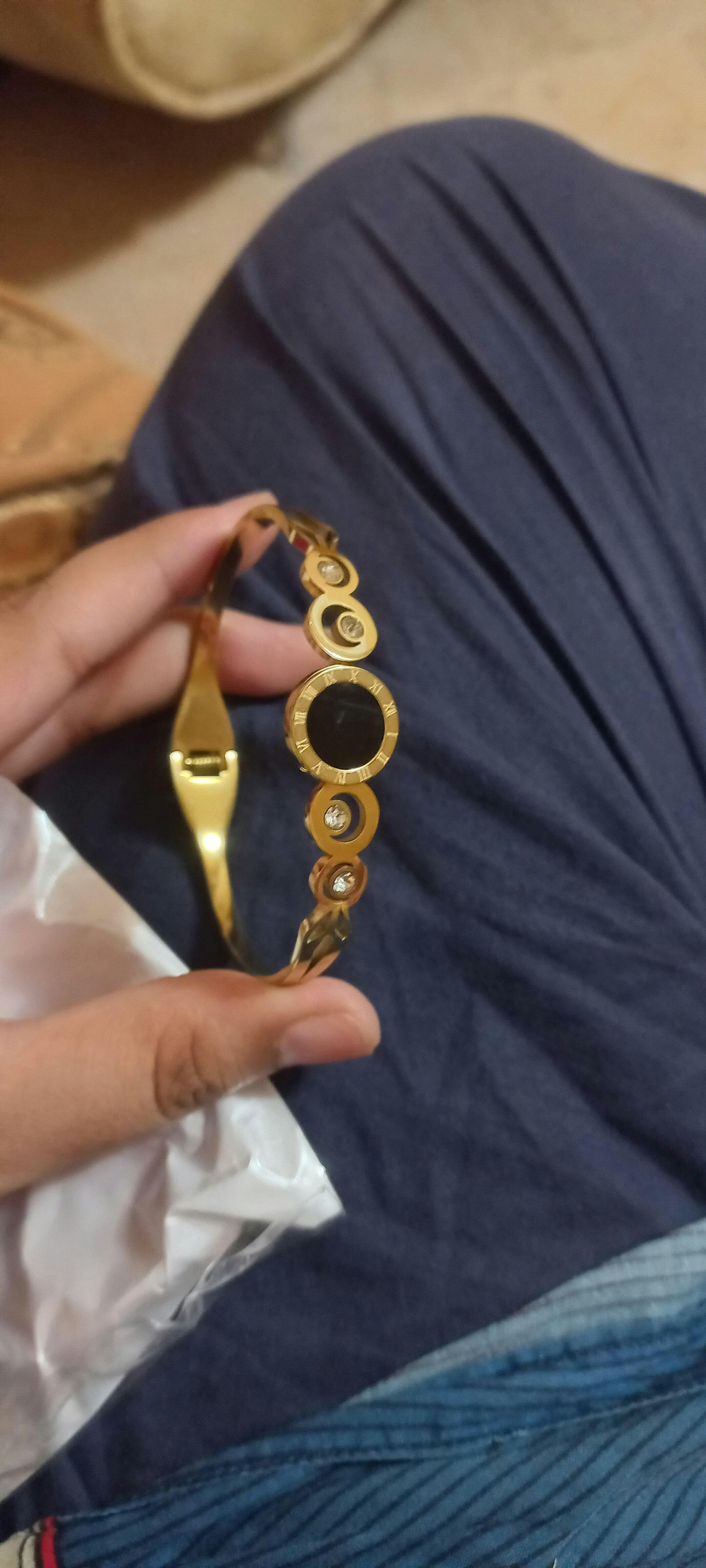 Premium stainless steel with gold finish – tarnish-resistant and skin-friendly