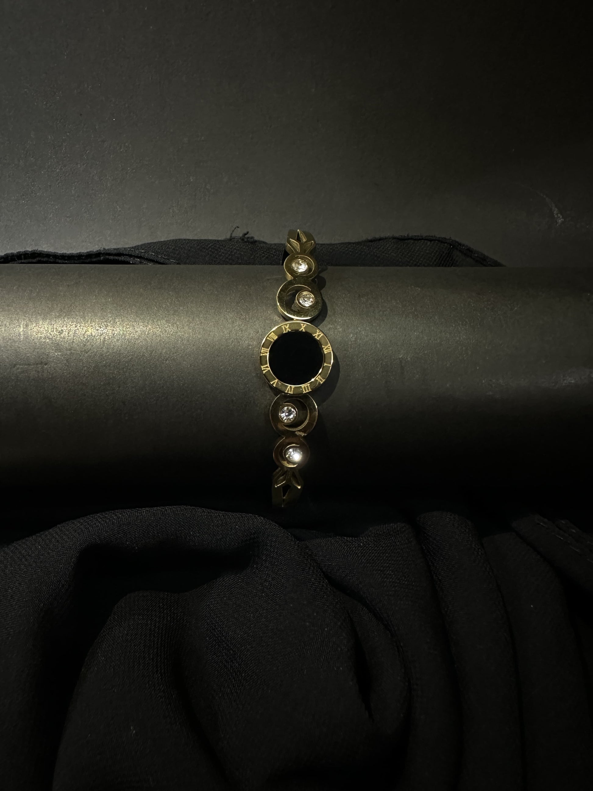 Sleek Minimal Korean-Inspired Handcuff Timeless elegance meets modern minimalism. This Korean-inspired handcuff bracelet features a delicate blend of glossy black, gold accents, and crystal-clear stones – designed for those who appreciate clean aesthetics and quiet luxury.